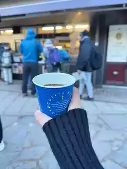 There is a coffee shop with a million-dollar view corner. 🏔️ This shop opens in the morning at Kappa Bridge. There is only 1 shop. Walk out and find it. In addition to hot coffee, there are also warm buns for breakfast to relieve the cold. Anyone who comes must come and take a photo to check in at this corner. The price of a cup of coffee is about 100 baht, which is not expensive for the view you get. The atmosphere is outdoor. You can choose to sit at a table or corner that you like.