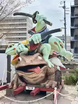 ✨ The prominent symbol of Nawate Street is the frog statue and many frog-patterned decorations. There is a story that in the past, frogs lived in this area. In addition, the word "kaeru" (frog) in Japanese sounds like the word for "return", making frogs a symbol of welcome and good fortune.