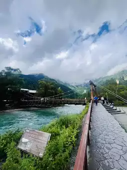 My hike began along the **Kappabashi Bridge**, the iconic wooden suspension bridge that serves as Kamikochi’s gateway. From there, I followed the well-maintained trail through lush forests of birch and larch, their leaves shimmering in the sunlight. The sound of the rushing river and occasional bird calls created a serene soundtrack.
