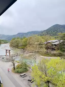 For those who dream of waking up to a view of mountains and a clear river flowing through the window, don't miss Gosenjaku Hotel in Kamikochi. ⛰️ This hotel is located right at Kappa Bridge. The view from the room is postcard-quality! No need to go far, just open the curtains and it's so beautiful you can't speak. 🏞️☘️