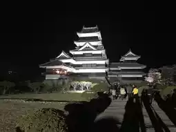 The nighttime lighting of Matsumoto Castle highlights the elegant contrast between the black castle keep and the cherry blossoms. Reflections of lights and blossoms on the moat's surface create picturesque views that attract many photographers. Visitors often stroll around in traditional kimonos, adding to the romantic atmosphere. There are also special cherry blossom viewing areas, tea refreshments, and market activities during this period.