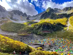 The Karesawa Glacier route is known for its challenging terrain, with alternating mountains and valleys, glaciers and rock faces weaving together to create a magnificent landscape. In summer, alpine flowers adorn the glacier's edge; in autumn, crimson leaves blend with the white snow, creating a stunning scene a photographer's dream. For ice climbers in the snowy season, challenging the ice walls offers an extreme experience.
