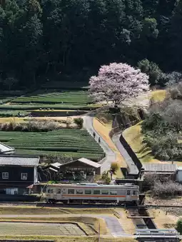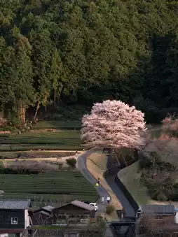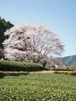 Recommendation: You can marvel at a large, single Tan-zome cherry tree here 🌸 It's a recommended spot where you can also photograph the cherry tree with the tea fields ☺️