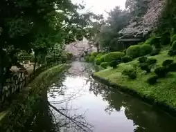 The moat still exists, forming a river that surrounds the park. When visiting during cherry blossom season, the beautiful blossoms reflect on the moat, creating a stunning scene. Climbing up to the observation deck on the castle ruins offers a wide view, allowing you to see Matsuyama Castle, Matsuyama City, and the cherry blossoms covering the mountains.