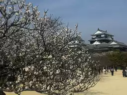 • In spring, cherry blossoms fill the castle grounds, creating a scene where the castle appears to float amidst a cloud of white and pink blossoms.
