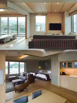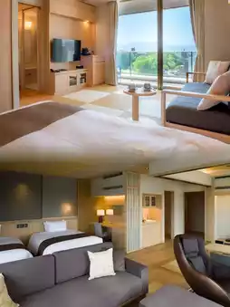 The guest rooms feature a cozy tatami style, decorated with simple elegance and warmth. Slide open the wooden doors to reveal breathtaking views of the surrounding scenery. After a day of exploring, lie down on the soft tatami mats and let all your worries melt away. Immerse yourself in the traditional Japanese living culture and experience pure bliss.