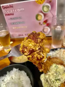 “Goichi, which I happened to come across in the heart of Odori. I ordered a half-and-half set, and the sweet and sour seasoning of Chicken Nanban, the rich tartar, and the salty rich flavor of Soy Sauce Karaage! These two flavors blended well together in one plate, so I didn’t get tired of either one. In particular, the Chicken Nanban had a perfect combination of juicy large breast meat and moist tartar, and the Soy Sauce Karaage had a crispy exterior and moist interior that went well with rice. In addition, you can refill the salad and rice + miso soup, so you don’t have to worry about the amount, and the atmosphere was great, so I didn’t feel burdened eating alone. I felt full during my trip with just this one set! Matsuyama ‘Goichi’, I really want to visit this place again 😊”