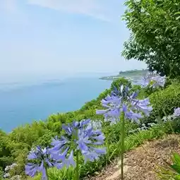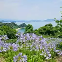 ✨ Highlights: Gogoshima, a small island off the coast of Matsuyama City, is home to the breathtaking 'Lover's Pass.' In early summer, purple and blue agapanthus flowers sway in the sea breeze, welcoming visitors. From the hilltop, you can enjoy a serene view of the Seto Inland Sea, where the flowers, sea, and sky come together to create a romantic landscape. The island is rich in nature, making it perfect for cycling and leisurely walks. It's a hidden gem for flower enthusiasts and a must-visit spot for photography lovers.