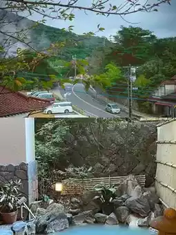 It's even more spectacular during the fall foliage season. You can also enjoy a foot bath in one corner.