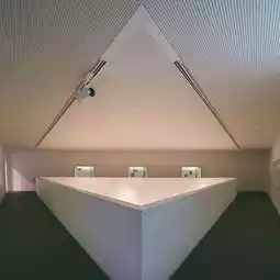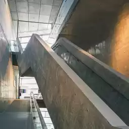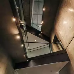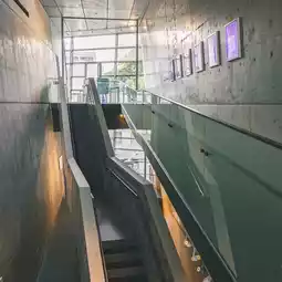 It is triangular in shape, with four floors above ground and one floor below ground, made of steel-reinforced concrete, and the second to fourth floors are connected by an aerial staircase that does not include the intermediate pillars, which was very exciting. 🥺