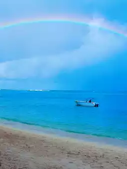 Depart at 6 am and go to the Tamarin Beach in the southwest of Mauritius to see dolphins. Here I just saw a rainbow across the sea, although this is not uncommon in Mauritius, because you can see rainbows everywhere at any time🌈. At about 8 o'clock, take a speedboat to catch the wind and waves🚤, and go to see the dolphins foraging🐬. Compared with the spectacular scene I saw in Lovina, Bali before, there are not many dolphins here, but you can swim with them🏊.
