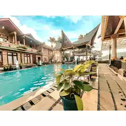 Samosir Villa Resort distinguishes itself with its two swimming pools and direct access to Lake Toba. You will only be able to reach the hotel by boat as it is located on Samosir Island, right in the middle of the lake.
