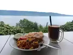 There were many stalls and small restaurants along the main road. Most of them offer a very nice view of Lake Toba and the prices were cheap. The lake view from my room in Gapura Hotel was superb too!