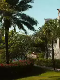 ✔️ Mosque courtyards framed by palm trees