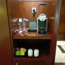 The room is complete with iron, cofee machine and comfortable pillow and bed.