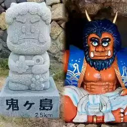 Megijima, also known as Onigashima, is about a 20-minute boat ride from Takamatsu Port. According to legend, Momotaro came here to fight demons, and there is a statue of a demon at the port of Megijima to welcome tourists taking the ferry.