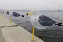 Right on the dock there were already two interesting installations, one was the birds and seagulls I liked, standing in a row, but they were fake. Interestingly, later I saw a group of real seagulls at the pier of Ogijima.