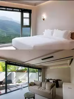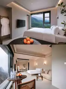 The hotel is located in the Taibai Mountain Tourist Resort. It features a simple and high-end Japanese wabi-sabi style. Facing the mountain, it has a private bath, which is very comfortable. It is in line with the aesthetics of modern young people.