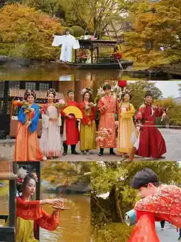 A band across the bank played the elegant sounds of the Tang Dynasty in unison,