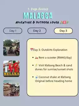 β’ π² Rent a bicycle (RM15βRM20/day) and explore Dutch Square, St. Paulβs Hill, and Jonker Street