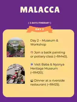 • 🚤 Melaka River cruise for sunset shots (~RM25).