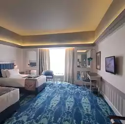 The hotel's guest rooms are equipped with air conditioning, flat-screen TVs with satellite channels, and free Wi-Fi. Some rooms also have balconies that offer views of the city. The suites offer additional space and features, including a separate living room and a kitchenette.