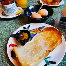 WE LOVE THE DECOR OF THE CAFE WITH WALLS FULL WITH TRADITIONAL AND CLASSIC PLATES, CUPS, LAMPS, THERMOS AND KETTLES FROM THE OLD ERA. THE SEATING TOOK US BACK TO THE 70'S WITH OLD FASHION SOFAS. VERY NOSTALGIC.