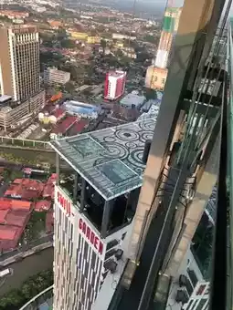Go to 41st floor using the residence hotel lifts. On 41st floor, take another lift to 42nd floor to buy tickets. RM25 per person on weekday, RM35 per person on weekend, tickets are for one time entry with unlimited time.