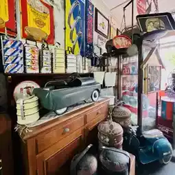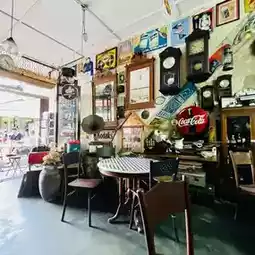The interior is filled with antiques and old stuffs, posters, antique roadsigns and cultural souvenirs.