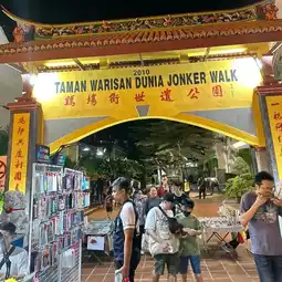 Jonker Walk is in the Chinatown area in Malacca. It starts from across Malacca River and the street is filled with historical houses along its left and right sides. Many of which are shops selling antiques, textiles, foods, handicrafts and souvenirs such as keychains and shirts.