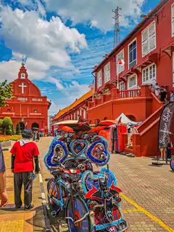 This is the Dutch Red House # Opening up the New Year in Malacca with a trip: in the Dutch Red House The regional style of Jichang Street immediately changed, with a strong Dutch style. "This red house was built by the Dutch in 1650 and used to be the office of the Dutch Governor General here. Now this place is the Liujia History Museum, next to the Christian Church. Surrounded by the Dutch Square, it has a strong Dutch colonial style. Next to it is the Canal District, where there are many small hotels renovated from old houses, and you can also take sightseeing boats to swim the river. There is a small square at the entrance of the red house, as well as a photo taking spot that I like in Malacca. Hello everyone, I am passionate about sharing. This time, I will introduce you to a small square located in Malay." The tricycles are decorated very cute and beautiful.