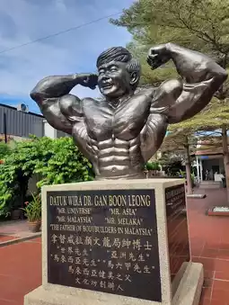 #malaccatrip Jonker St can be described as a bustling street with a lot to see and eat. We enjoyed walking around and going into different stores and trying some different food. We loved seeing the different temples, the street art and being close to the water also. Make sure you check out the night market though, it is very busy but equally exciting at night with the great lights and vibes. It was cool walking past the Malaysian strong man statue’s also, aha cool photo opportunity.