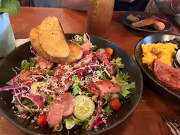 Hubby went for the Western breakfast platter, which he enjoyed — simple, hearty, and satisfying enough to fuel our day of exploring, as well as a salad as a side cos we were guilty from bingeing so early so munching a bit of salad make us feel better psychologically (more like I forced my hubby to eat)….
