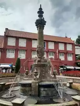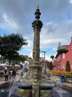 This beautiful fountain is located in the middle of many tourist attractions in Melaka. It has many beautiful ornaments/stucco work, which makes it very beautiful.