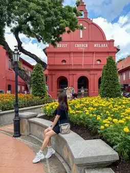 Christ Church is the shining star of Dutch Square, and trust me, she knows it. 💃 With her deep red walls, white cross, and charming Dutch-style architecture, she’s basically Malacca’s most photogenic diva. Built in the 18th century, it’s the oldest functioning Protestant church in Malaysia, and stepping inside feels peaceful and cool—perfect after wandering in the tropical sun. The wooden pews, the brass plaques, and the colorful stained glass give it such timeless beauty. Outside, the backdrop of Christ Church is THE place for those iconic Malacca photos (bonus points if you catch a decorated trishaw in the background!). I loved visiting in the late afternoon when the sunlight made the whole building glow even redder. It’s elegant, historic, and totally Instagram-worthy—a triple win for any girly traveler. 🌺