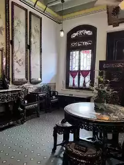The museum building embodies a fusion of Eastern and Western influences. The interior is spacious and features a skylight for natural light and ventilation. The furniture, mostly made of Chinese rosewood, blends Chinese, Dutch, and British Victorian styles, embellished with mother-of-pearl inlaid murals and imported ceramics, creating an ornate and elegant atmosphere.