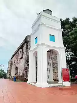 At the top, a serene statue of St. Francis Xavier gazes over the city, offering sweeping views of the Melaka River, the Straits of Malacca, and the city’s charming red rooftops. Surrounded by tranquil greenery and rich history, the church offers not only a spiritual connection but also a picture-perfect experience that captures the essence of old Melaka.