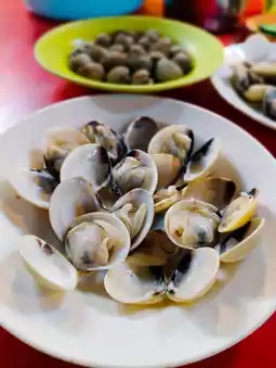 🕰️Open daily from late afternoon (4:30 pm onwards), it gets buzzing with foodies hunting for the freshest clams, cockles, and snails, all dipped in tangy chili sauce. Order their signature: longkang-style siham (fresh clams) and mix & match other seafood options for major variety! 🍽️ Pro tip—everything’s so fresh here, so don’t be afraid to go for the shellfish if you’re usually picky.