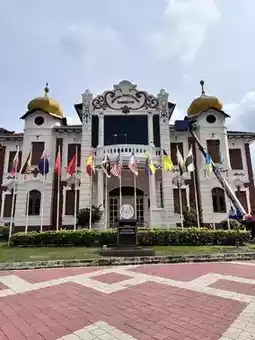 The Proclamation of Independence Memorial is a British/Dutch colonial-style building with two golden domes. It is a museum in Malacca, Malaysia, established to commemorate the country's struggle for independence. It showcases the history from the colonial era to full independence in 1957.