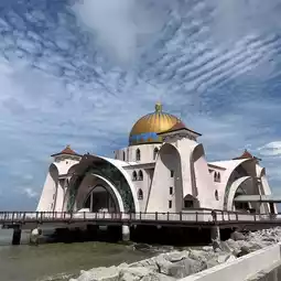 Highlights: The Melaka Straits Mosque also is known as Malacca's floating mosque as it is built on stilts above the sea. It is located on Pulau Melaka which is a man-made reclaimed 40 hectare island just off the city centre of Melaka.