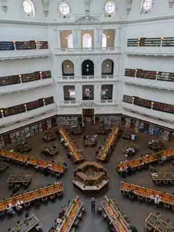Highlights - Iconic Insta-worthy La Trobe Reading Room, featuring a grand octagonal dome, and its rich collection of over 5 million items and impressive interior. Established in 1854, it's a historical landmark with stunning architecture and free exhibitions with free entrance and wifi.