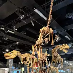 • Approximately 17 dinosaur and giant creature skeletons on display. You can even walk under a Mamenchisaurus and touch exhibits like its neck bones and teeth.