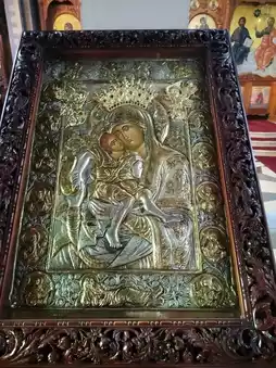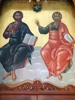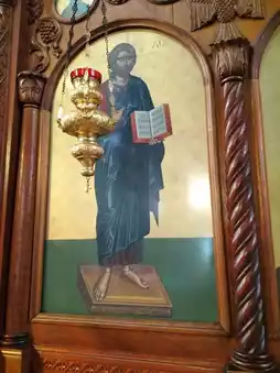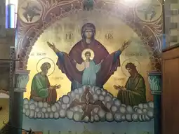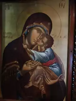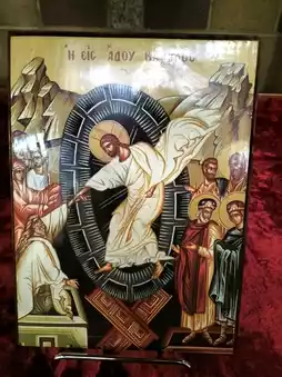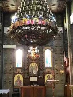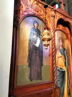 It's so beautiful inside as well as outside. The stained glass windows have beautiful colours on them, and the icons even more so! Our favourites include but aren't exclusive to, the beautiful icon of the Resurrection, the Trinity, and where Mother Mary lifts up her hands in prayer! Byzantine iconography is one of our favourite art forms!💒