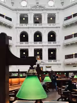 Sitting at the wooden tables here, you can truly immerse yourself in the atmosphere of history and knowledge. The library isn't just stunning on the outside; its interior design, combined with warm lighting, makes it a place you'd want to linger in, even if you're not reading.