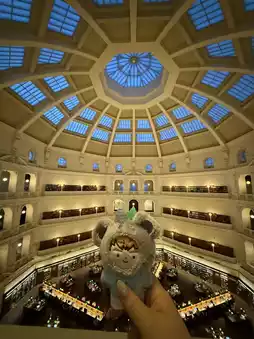 As night fell, I arrived at Block Arcade. This Victorian-style shopping arcade is breathtaking, with its mosaic tile floors, stained-glass dome, and intricate wrought-iron railings, each exuding a touch of vintage luxury. The arcade boasts a dazzling array of shops, from exquisite jewelry stores to artful bookshops to sweet shops wafting with enticing aromas. At one of these shops, I bought a piece of Lamington cake, a local specialty. The soft, fluffy cake, swirled with coconut flakes and filled with sweet jam, filled every bite with a sense of bliss.