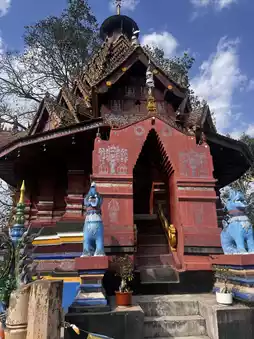 It is about 70 kilometers from Jinghong to Mengzhe Town. Half of it is on the highway, and the other half is on national and provincial roads. It is quite easy to walk. It took more than an hour to drop the passengers off. I found a place called Jingzhen Octagonal Pavilion and the Lost Buddhist Kingdom nearby, all in the same place, so I walked back a few kilometers and went to check in again.