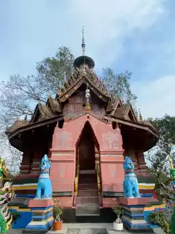 The pavilion consists of a base, a pavilion body, and an octagonal ten-story pavilion. The pavilion body has four doors, and the walls are covered with light red mud, inlaid with various colored glass, and printed with various patterns of flowers, animals, and people in gold and silver powder. The roof is layered, and the top of the tower is a rod-shaped tower brake. The brake rod is equipped with metal sheets engraved with mesh-shaped whistle eyes. When the wind blows, the whistle sounds. As a precept hall in the Theravada Buddhist architecture, Jingzhen Octagonal Pavilion is a place for chanting, confession, meetings, and discussions. Major affairs and religious activities are decided here. In 1988, Jingzhen Octagonal Pavilion was listed as the third batch of national key cultural relics protection units.