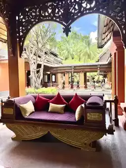 In the afternoon, we switched hotels to the InterContinental Xishuangbanna Resort. Compared to the Crowne Plaza, the InterContinental is more beautiful and better located. This hotel is situated on the site of the Dai King's palace from the year 1160 AD, surrounded by vast tropical rainforest. The hotel's design blends Thai and Dai architectural aesthetics, making you feel immersed in Dai culture, creating an elegant garden-style resort.