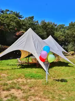 Located in the camping area at an altitude of 900 meters on the top of Yimeng Scenic Area, there are various facilities such as tents, canopies, and yurts.