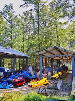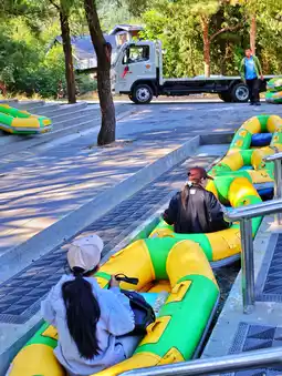 This is a high mountain pipe track slide, with a slope of more than 30 degrees. The slide along the way is changeable, with various straight roads, bends, and rushing roads, which are very exciting👍